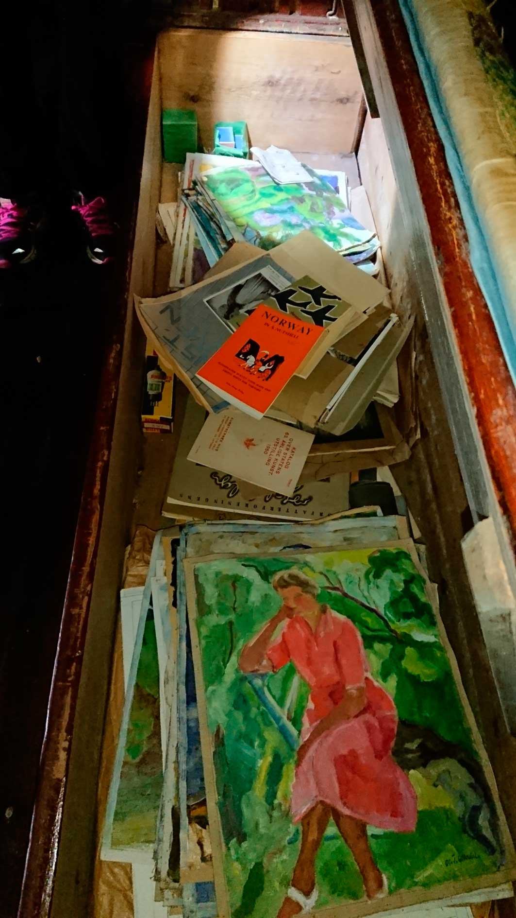 I denne slagbenken skjulte det seg ein skatt som ingen, sjølv ikkje familien, visste om. Konstituert fagdirektør ved kunstavdelinga i Viti, Tove Lande, omtalar funnet som svært viktig. Foto utlånt av Stein Gunnar Ytterdal.