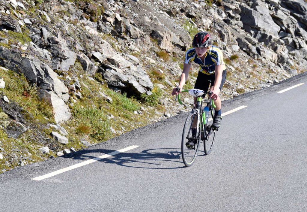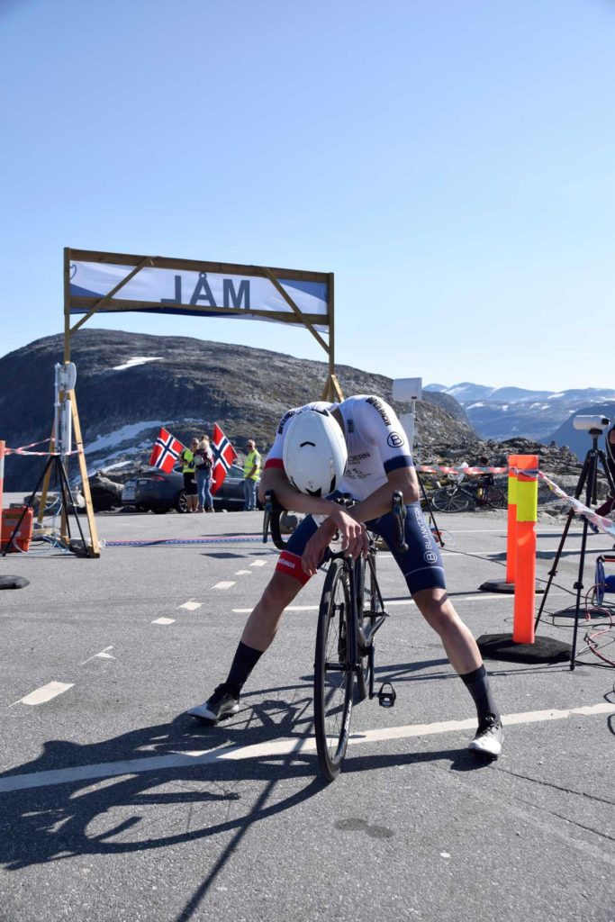 Dei siste bakkane opp frå Djupvasshytta var tøffe, veldig tøffe. Christopher Shønefeld representerte Øvre Valldal Cycle og kjempa for å halde stilen opp mot toppen av Dalsnibba.