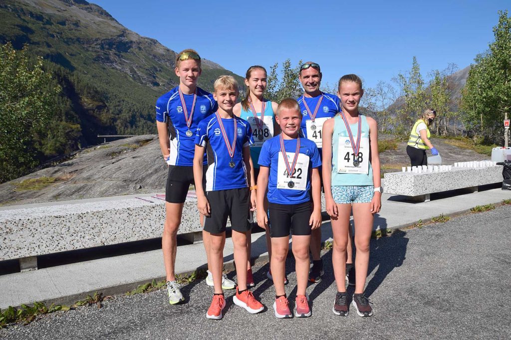Løparane til Valldal idrettslag deltok i Nibberittet Mini med sterke prestasjonar. Dei finn du nok på startlista til Nibbeløpet så snart dei er gamle nok. For denne gjengen er det blitt ein tradisjon å delta på arrangementet i Geiranger. Bak frå venstre Laurits Linge Glomnes, Elida Fuglem og Jan Ole Fuglem. Framme frå venstre Heine Fuglem, Sigve Fuglem og Vilja Fuglem.