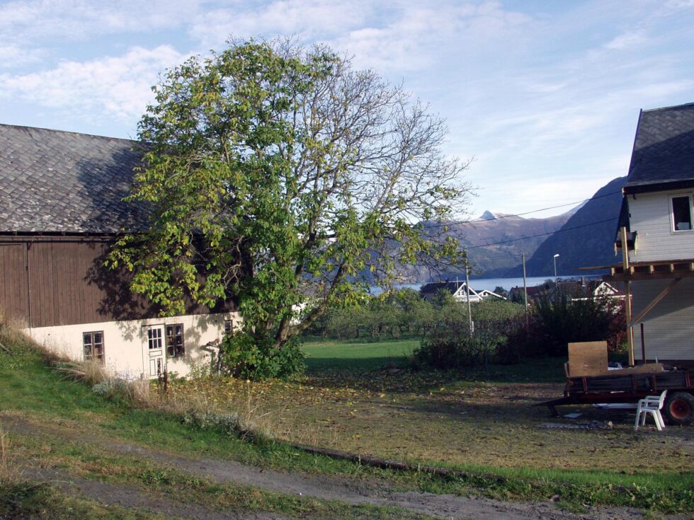 I Poldgarden i Eidsdal var heimattflyttarane på garden særs nøgde med det store valnøttreet – som attpåtil bar frukt i form av ordentlege nøtter. For 20 år sidan vart lokalavisa fortalt at treet vart planta for 70-80 år sidan av Anton Nydal. Arkivfoto.
