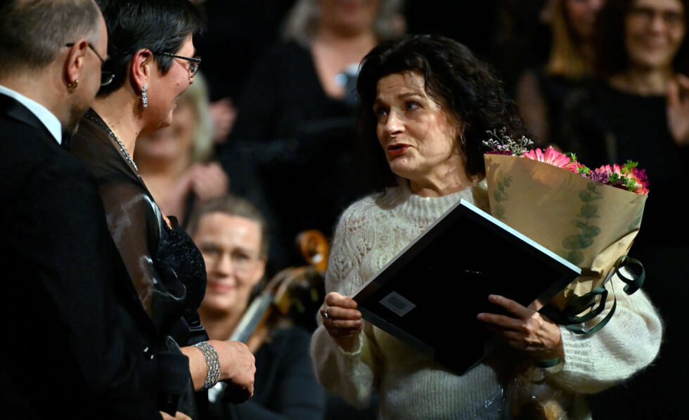 Marianne Ravn Stavseng fekk både blomster og diplom – og sjølvsagt mange gode ord då ho vart utnemnd til æresmedlem av operakoret. Foto: Fridgeir Walderhaug/Bypatrioten