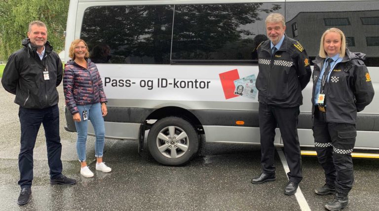 Passbilen på besøk, til stor glede for fleire